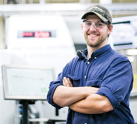 Access to technology and hands-on experience was vital for Electro-Mechanical Technology grad Andy Tysver. Andy Tysver doesn’t hesitate when asked why he chose Fox Valley Tech. “The hands-on training. It’s the best part,” says the 2021 graduate of the Electro-Mechanical Technology program. “Here you get to work on the actual equipment that you’re going to work with