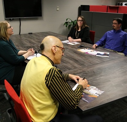 Spring 2017 FVTC’s Phi Theta Kappa Honor Society opens doors to leadership, networking, scholarships and more. PHOTO: PTK President Amber Stanczak and PTK Vice President Jason Lilly (right of table) meet with PTK advisors Jennifer McIntosh and Wolfgang Wallschlager. Joining Fox Valley Technical College’s Phi Theta Kappa (PTK) Honor Society chapter was a real game-changer for