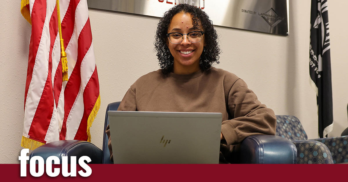 While she completes her degree, Valery also has a work-study job in the Veterans Resource Center. “Mostly I answer questions student veterans have and help Jeremy and Crystal with projects,” she explains. “I love this job because it provides me with a lot of flexibility, and I love working with other veterans and helping them get their questions answered.”