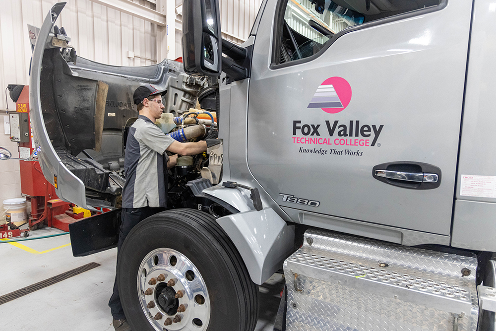 The 65-credit associate degree program provides in-depth theory and extensive hands-on training in heavy-duty diesel engine maintenance, air brake and hydraulic brake systems, drivetrains, steering and suspensions, and electrical systems. Students also learn about engine systems, computer control systems and advanced drivetrain systems while they work on a fleet of more than 75 diesel-powered over-the-road tractors and 55 trailers, courtesy of the FVTC Truck Driving program.