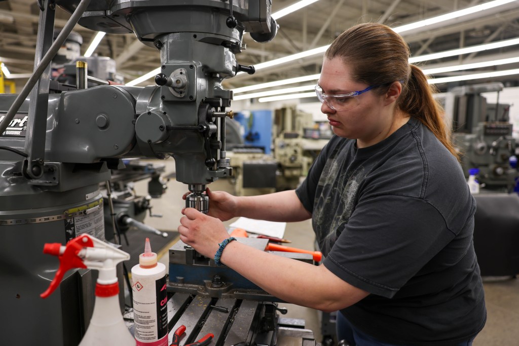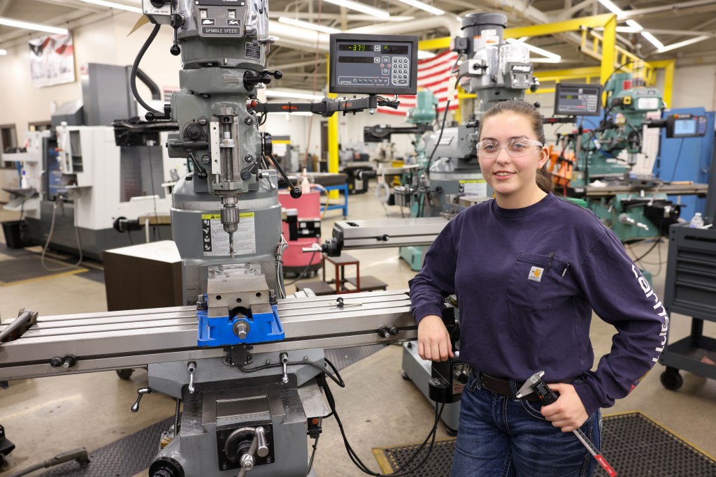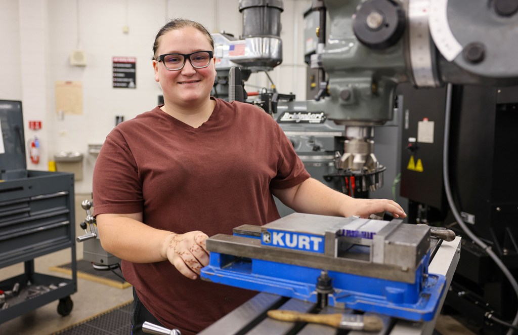 In the fall of 2022, she attended the college’s open house to learn more about welding programs and ended up touring the machine tool lab. Talking to the instructors, Jennifer says their upfront style, and explaining what she’d learn in the Machine Tool program, won her over.