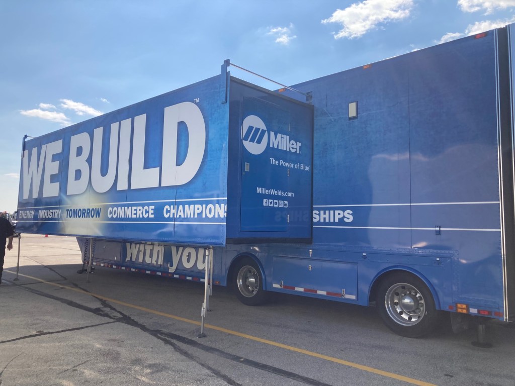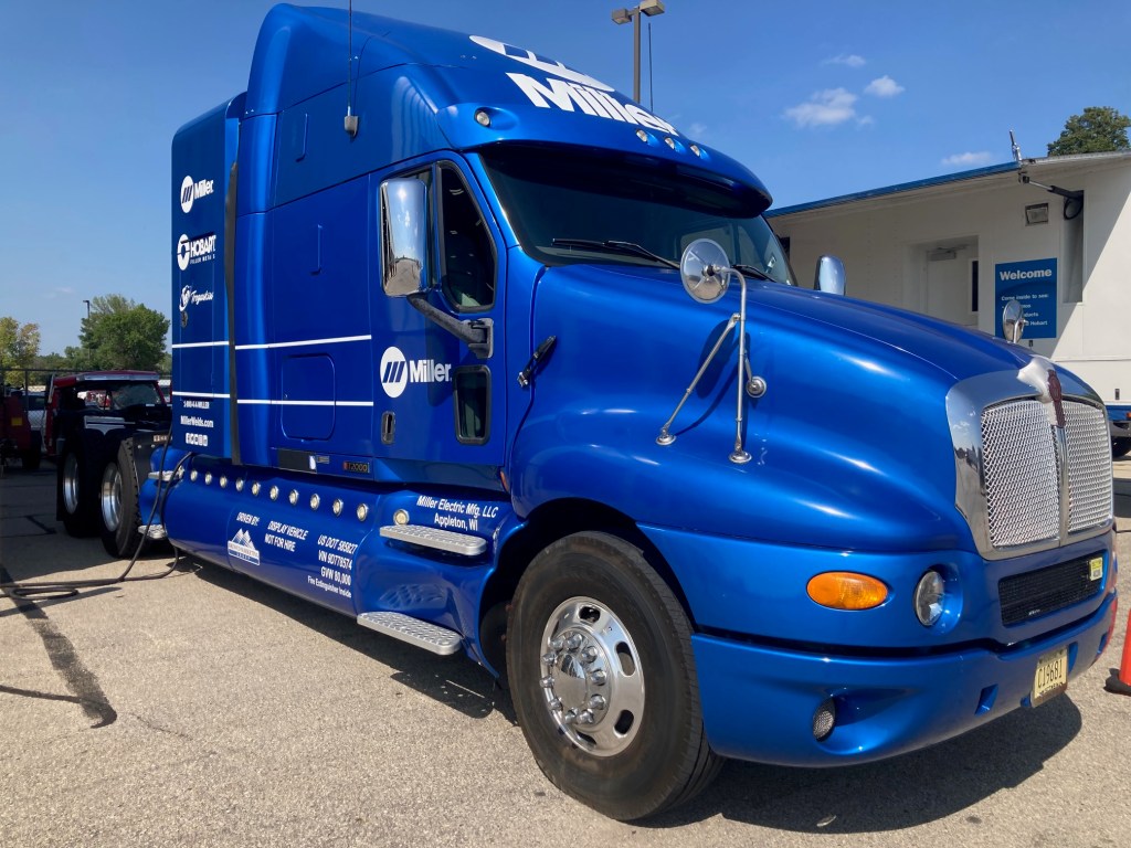 The truck and trailer were donated to the college by longtime partner Miller Electric but needed rebranding. Lead Graphic Designer Cara Jakubiec oversaw the project and created the design. The FVTC Transportation team coordinated the paint job: Fleet Manager Brad Hein managed the preparation of the rig and Diesel Instructional Aide Keegan Nordvold painted the trailer. Decals were installed by FASTSIGNS.