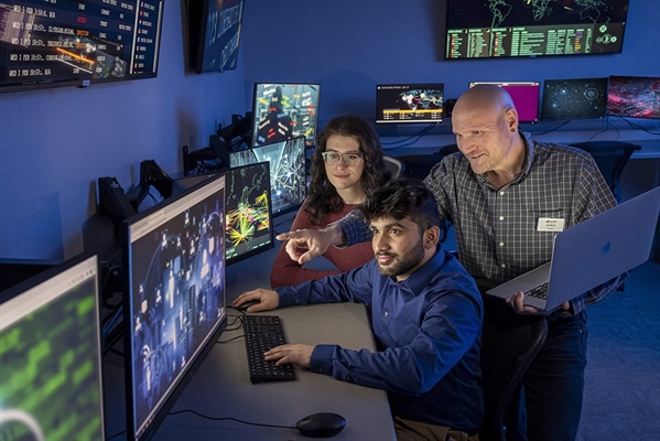Cybersecurity Specialist program creates ‘turnkey’ graduates It involves mystery. Fascination. And a healthy dose of suspicion. Those are just a few of the qualities that have attracted students Kim Hinson and Bhuwan Tiwari to Cybersecurity at Fox Valley Technical College. IN PHOTO (l-r): Kim Hinson, Bhuwan Twari and instructor Joe Wetzel in the FVTC Cybersecurity Command