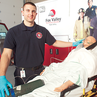 Spring 2015 Appleton native Bryce Sternhagen is doubly committed to a career in public service. For 20-year-old Bryce Sternhagen, success is all about setting goals and gaining as much education and experience as possible. The double-major student at Fox Valley Technical College is enrolled in both the Fire Protection Technician and Emergency Medical Technician (EMT) programs while working part-time.