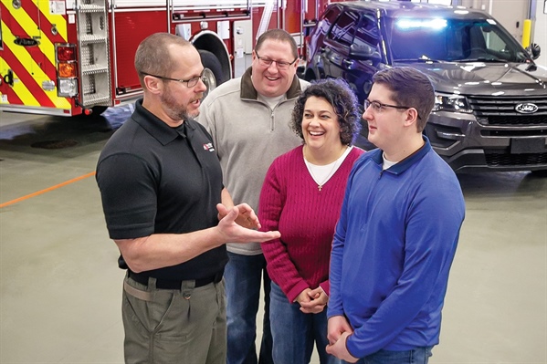 Spring 2019 IN PHOTO: Brad Bayerl (right) and his parents, Lisa and Marty Bayerl, meet with Cory McKone at the Public Safety Training Center. For this high school senior, choosing FVTC came with full support of his parents. Brad Bayerl has always been interested in criminal justice. “I participated in Teen Court and currently ride